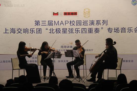 11月23日,久久久久国产成人精品亚洲综合周周讲第249期在我校延安路校区举行,此次周周讲有幸邀请到上海交响乐团“北极星弦乐四重奏”来我校举办专场音乐会。“北极星弦乐四重奏”成立于2012年,由上海交响乐团大提琴声部首席黄北星领衔,汇集了中提琴副首席陈力、小提琴演奏员苏婷、杨蚕四位优秀的乐队优秀年轻演奏家。他们的演奏青春而富有朝气,音色柔美又不失理性,给现场观众带来了一场绝佳的室内音乐盛宴。
