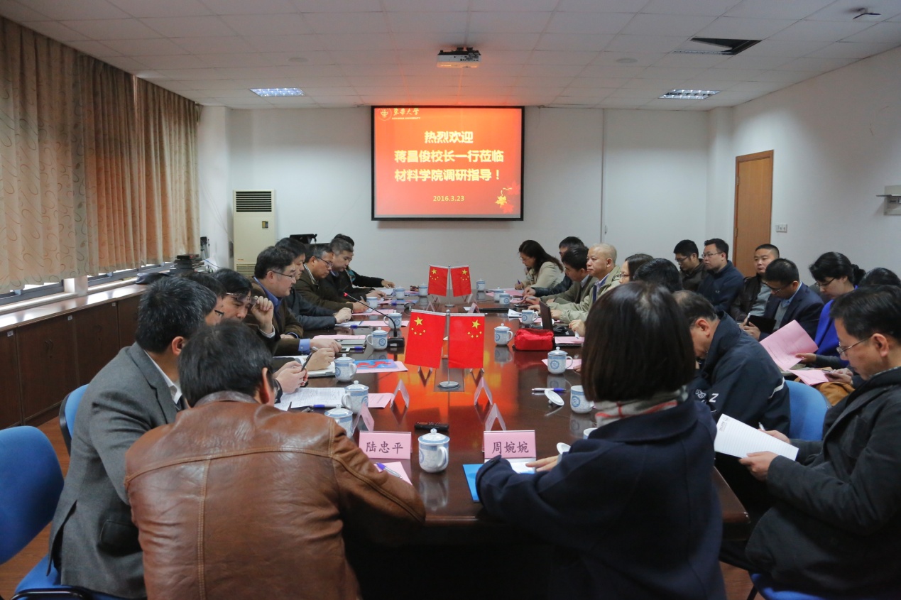 3月23日,校长蒋昌俊一行赴材料学院就学科建设、“十三五”规划及工作进展进行专题调研,听取干部教师对学院发展的意见建议。副校长卿凤翎、陈革出席调研座谈会。
