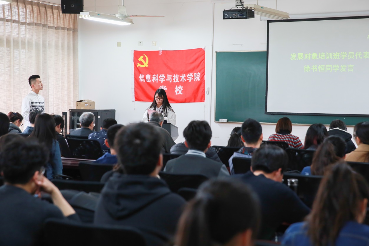 开班典礼在国歌声中开始。耿兆丰老教授宣读党校学员、指导老师和班组长名单。信息学院发展对象培训班学员代表徐书恒在会上发言,他表示,在党校学习的过程是一次宝贵的心路历程,学员们要把党的理论知识付诸实践,并表达了对培训班课程的期待。