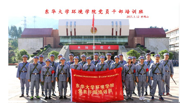 学院赴井冈山的党员干部,在井冈山培训基地举行隆重的开班和授旗仪式。环境学院党员干部培训班编入基地第1374期独立连,学院党委书记李征任连长并接过基地领导授予的班旗,开始三天的封闭学习。