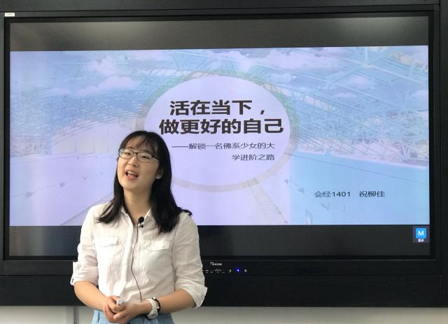 三位毕业生党员从自己的大学故事为切入点,向在校生解读大学之意义,传播正能量、弘扬社会主义核心价值观。王鑫是管理学院信管系学生党支部副书记,她以“聊点‘小事”为主题,引出细节决定成败以及在失败的经历中学会得到的道理。刘静静是管理学院工商系学生党支部宣传委员,她以“解读自己”为主题,传播“不忘初心、牢记使命”的青年责任。祝柳佳是管理学院旅游系学生党员,她以“活在当下,做更好的自己”为主题,探讨关于适合与喜欢的话题。三位毕业生在录制完微课之后,兴奋地说,“感谢学校在我们毕业之际,给了我们一个登上讲台,传播正能量的机会。”毕业生党员通过登上思政微课的讲台,既对自己的大学生活是一次很好的总结,也为他们即将作别的母校尽一份责任。同时,毕业生党员作为思政微课的“老师”,增加了思政微课的时代性、生动性和互动性。