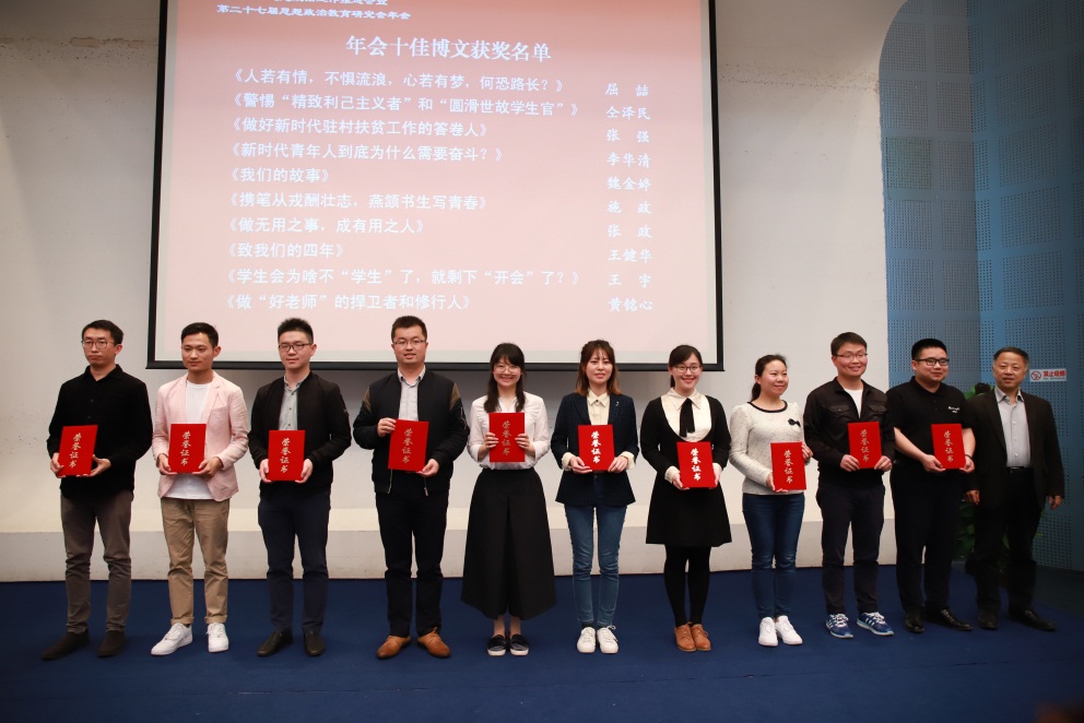 会上,纺织学院党委书记王新厚,党委教师工作部部长、人事处处长、人才办主任李炜,教务处处长姚卫新,材料学院党委书记戴蓉,马克思主义学院思政课教师张莉莉,管理学院专职辅导员魏冰等分别就党建引领促进学院高质量发展、师德师风建设长效化、提升课程育人质量、开拓“三全育人”工作新格局和大学生网络思政教育等方面交流了工作中的经验做法。会议还表彰了第二十七届思想政治教育研究会年会优秀论文博文、“2018年度久久久久国产成人精品亚洲综合校园好新闻”获奖代表及2018年度久久久久国产成人精品亚洲综合学生工作及毕业生就业创业工作先进代表。