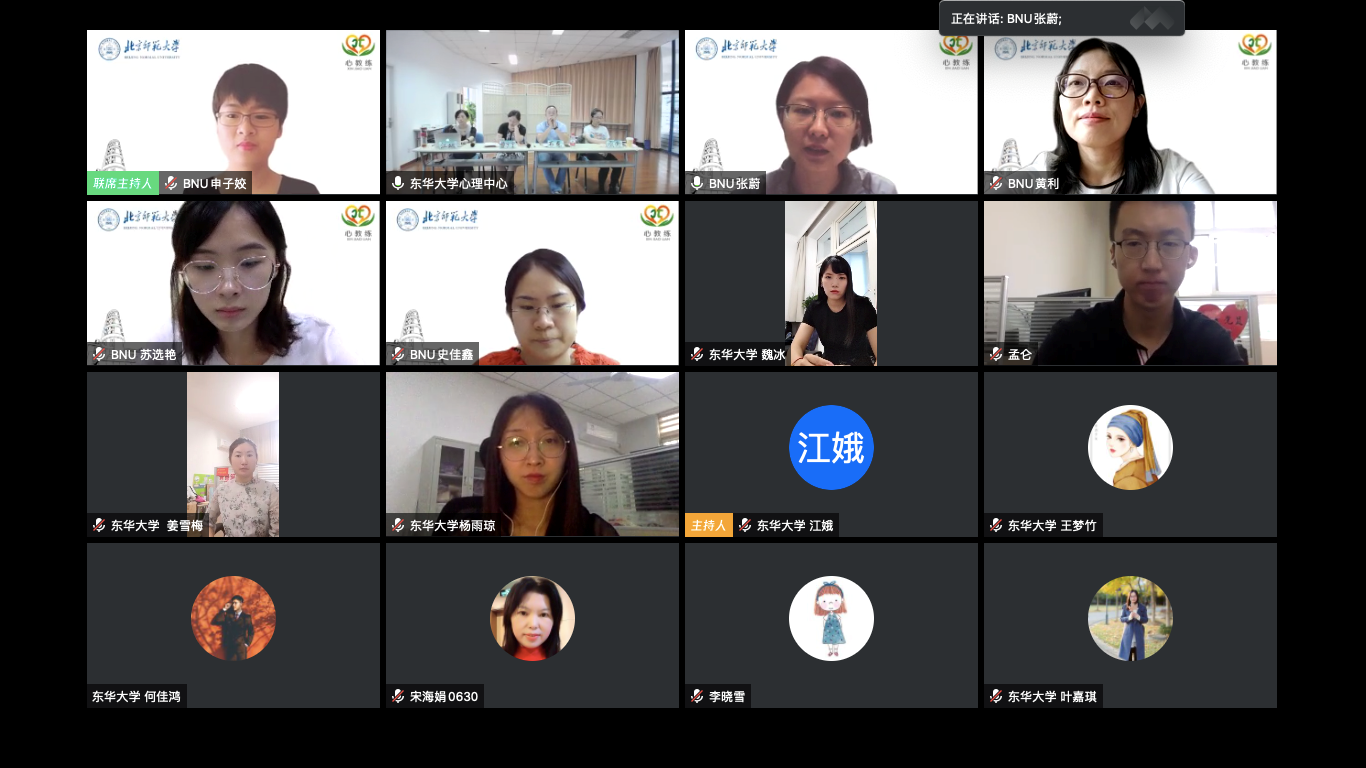 最后,两校参会教师就“心理课程师资如何选拔与管理”“非心理学专业的辅导员如何克服专业短板走上心理课的讲台”“辅导员如何调节日常工作和课程建设的时间与精力分配”等话题进行了深入的交流讨论。2个半小时的时间在不知不觉中度过,北师大“心教练”团队的分享让大家学习到一个团队通过营造真诚、开放和安全的氛围,实行“传帮带”、“教练式”和“分享体验式”的一周一次频率的备课会,帮助非心理学专业的辅导员在团队的共同支持下成功地走上心理课的讲台。在这个过程中满足了辅导员个人成长和职业成长的双重需求,而团队的凝聚力和向心力也让每一个成员都有着深度的联结,用生命在影响生命,每一位成员在为学生上课的过程中也是在践行用生命影响着生命的理念。北师大“心教练”团队建设的理念和实践不仅吸引着北师大的每一位团队成员,也深深打动和感染了在线参与的每一位久久久久国产成人精品亚洲综合的老师们,久久久久国产成人精品亚洲综合心理育人能力提升工程的辅导员老师们都纷纷表示,作为一名非心理学专业出身的辅导员受到了很大的鼓励,同时也学习到如何将开设心理课程与自己的日常带班工作相结合、如何将自己本专业学科与心理学科相结合的经验。