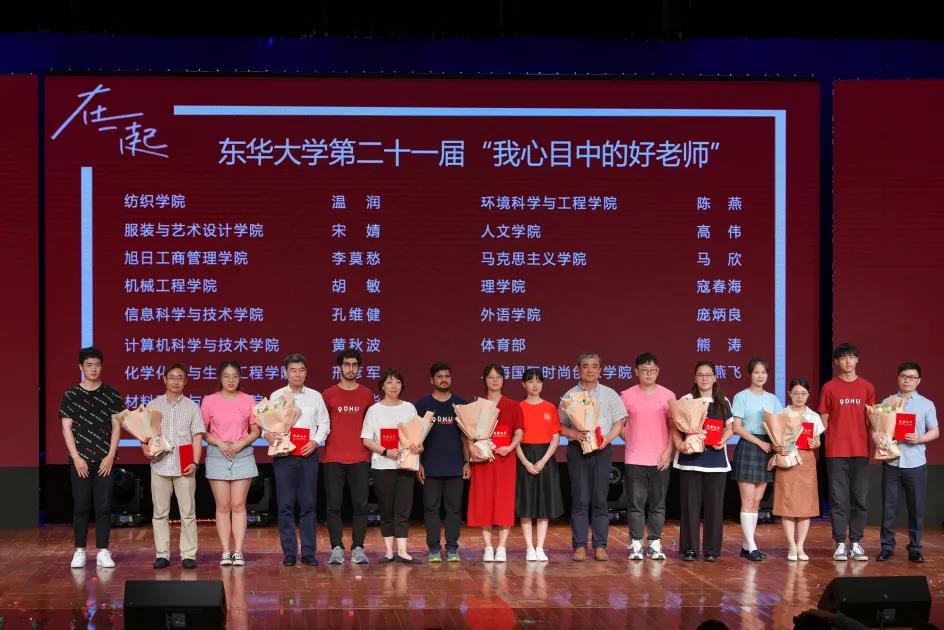 晚会上,学生代表为第二十一届“我心目中的好老师”获奖代表颁奖。