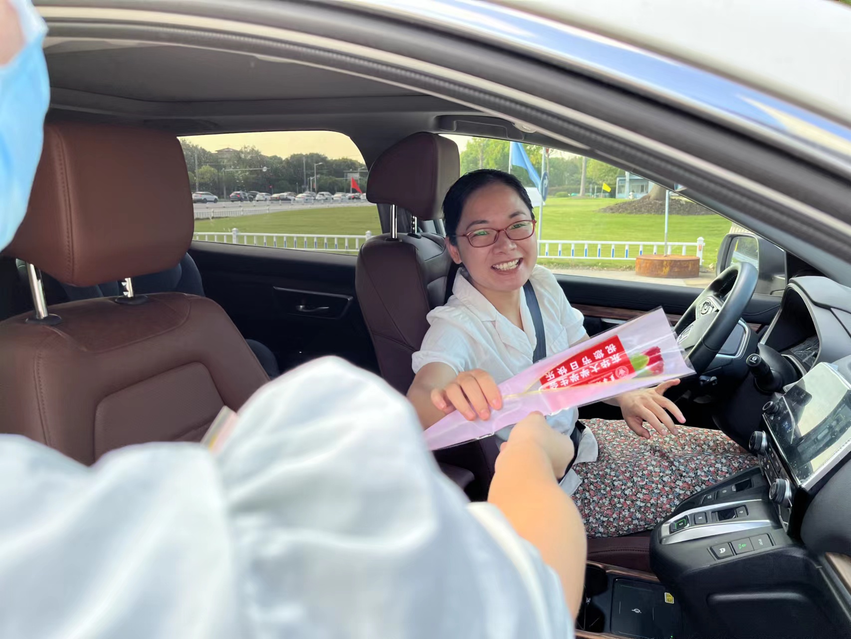 (学生代表为老师们献上祝福)
